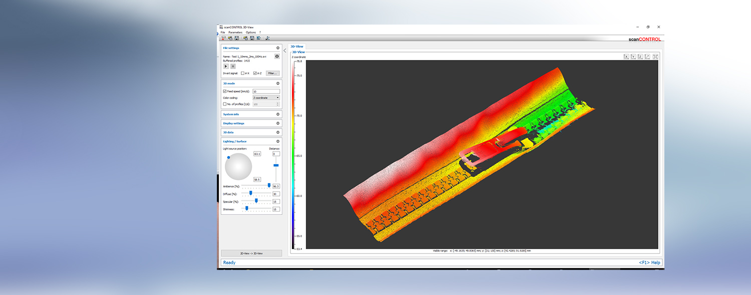 De scanCONTROL 3D-View software is ontworpen voor het bekijken en exporteren van deze 3D-gegevens. De software maakt interactieve 3D-weergaven van profielreeksen mogelijk en exporteert deze naar gangbare bestandsformaten die kunnen worden geïmporteerd in de CAD-omgeving van de gebruiker. Daarnaast ondersteunt 3D-View ook de configuratie van de scanCONTROL-sensor.