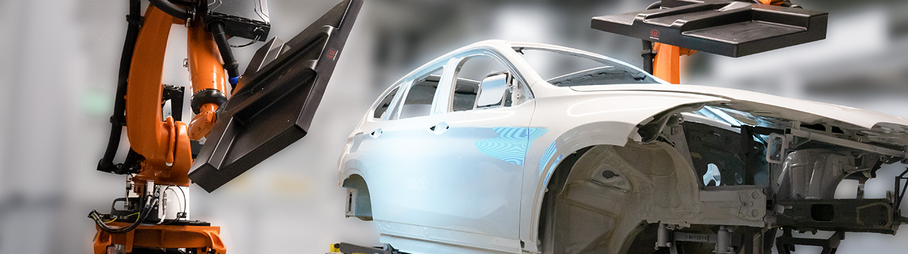 For glossy surfaces such as car paints in particular, a flawless production chain is required to ensure a high-quality appearance of the end product. The reflectCONTROL Automotive inspection system is used for fully automatic defect detection on painted car bodies and attachments.