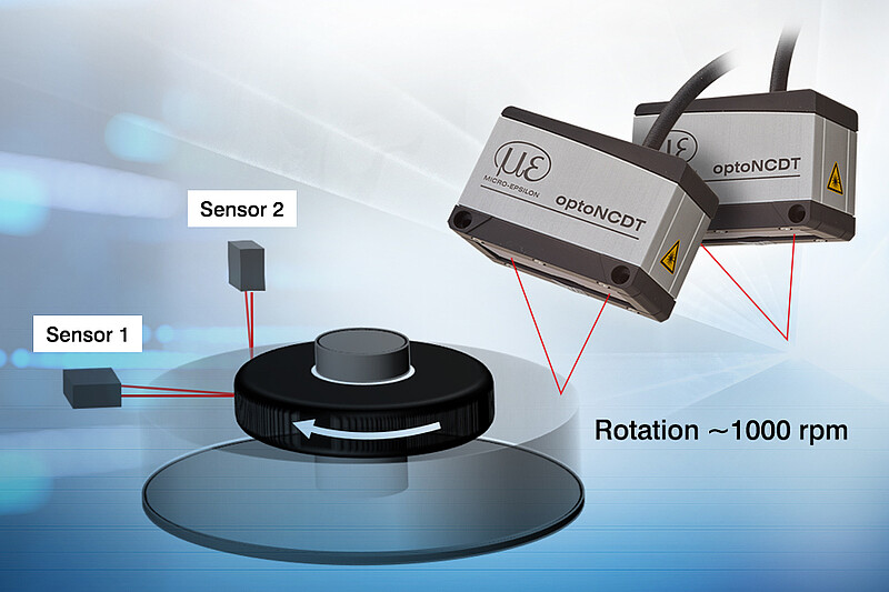 Laser sensors from the optoNCDT 1900 series are used to 100% inspect the radial and lateral runout of tires for cars and aircraft before they are fitted. Two sensors measure perpendicular to the tires to be tested. The sensor connection is made via the IF2008PCIe interface module, which assigns the encoder values of the rotation unit to the sensor’s measurement values. Ready-to-use programming commands support software integration.