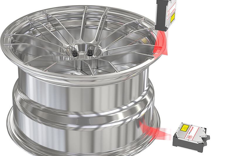 Maximum quality is required for the production of aluminium rims so that the necessary smooth running is achieved in the subsequent use. In contrast to tactile methods, laser scanners from the Micro Epsilon scanCONTROL series are used for this. These sensors inspect the rims for all geometric defects in an integrated tester. Therefore, a 100% in-line quality control is achieved.