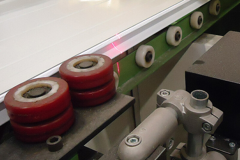 The individual sections of sectional doors are connected with a tongue and groove joint. For a tight and permanently flexible connection, compliance with the nominal dimensions is of decisive importance.Strong temperature differences lead to jamming and consequently to a poor fit of the doors if the dimensions are inaccurate. Therefore, precise inspection of the tongue and groove profiles is important for compliance with the manufacturing tolerances. The measurement is performed with scanCONTROL laser profile scanners. An anchor point is defined in the profile, which provides the reference for all calculations. As a result, all fluctuations within the strip process can be compensated for. These results are transmitted to the production line control room.