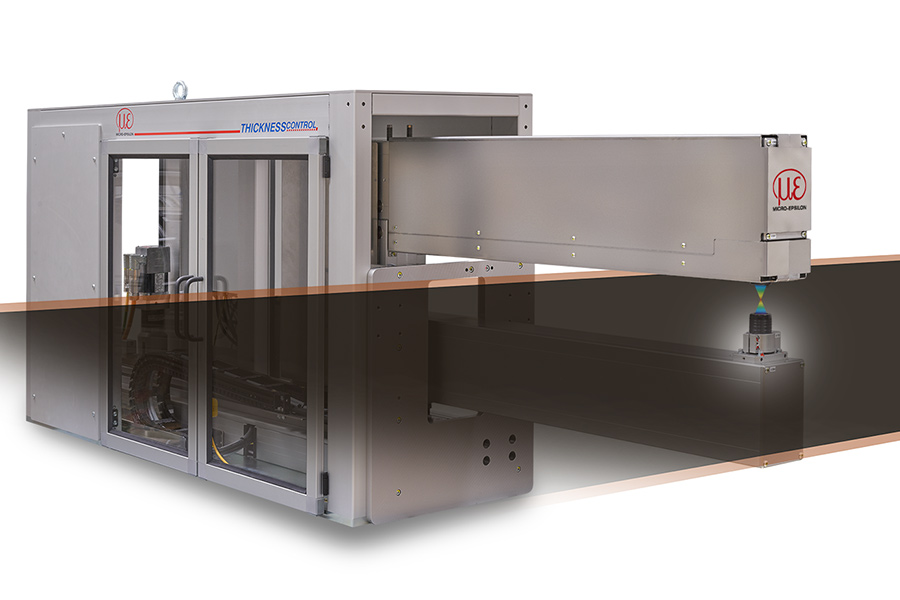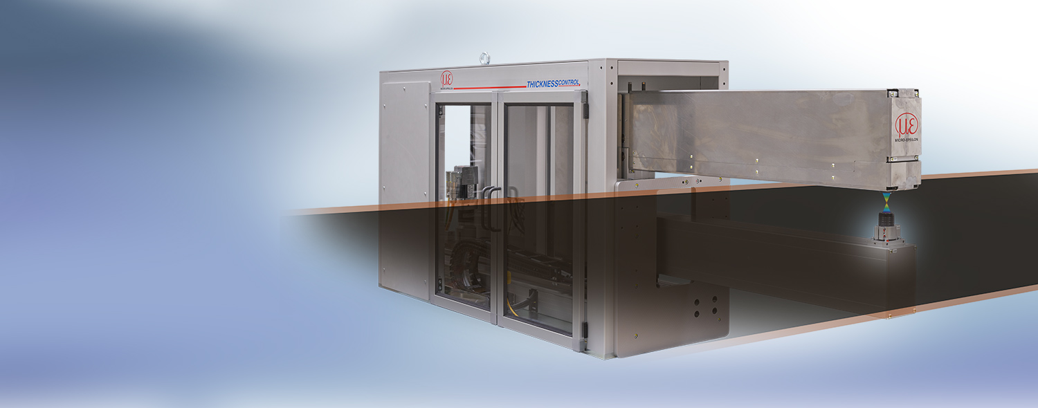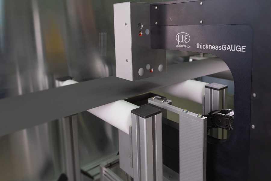 thicknessGAUGE sensor systems are used to measure the thickness of strip materials in-line. Several models with different sensor types, measuring ranges and measuring widths are available for precise thickness measurement. The systems use two optical or electromagnetic distance sensors to measure the strip thickness of cell material, films and coatings with micrometers.