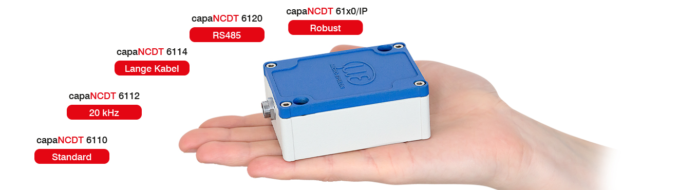 Dankzij het robuuste ontwerp met een behuizing van drukgegoten aluminium is de capaNCDT 6100 ook geschikt voor industriële omgevingen. Speciale modelvarianten bieden maximale flexibiliteit voor talrijke toepassingen: hoge beschermingsgraden tot en met IP68, lange kabellengtes en inzet in sleepkettingen of robotautomatisering.