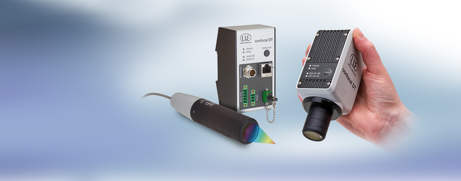 Het productassortiment confocalDT-sensoren staat voor de hoogste nauwkeurigheid en dynamiek in confocale chromatische meettechnologie. Deze sensoren maken zeer nauwkeurige en snelle metingen mogelijk voor zowel afstands- als diktemetingen van transparante objecten. Bovendien zorgen innovatieve controller- en sensortechnologieën voor een hoge signaalstabiliteit op alle oppervlakken. Het portfolio met hoogwaardige sensoren maakt het oplossen van uiteenlopende meettaken mogelijk, bijvoorbeeld bij de productie van vlakglas, in meetmachines en in de halfgeleidermachinebouw.