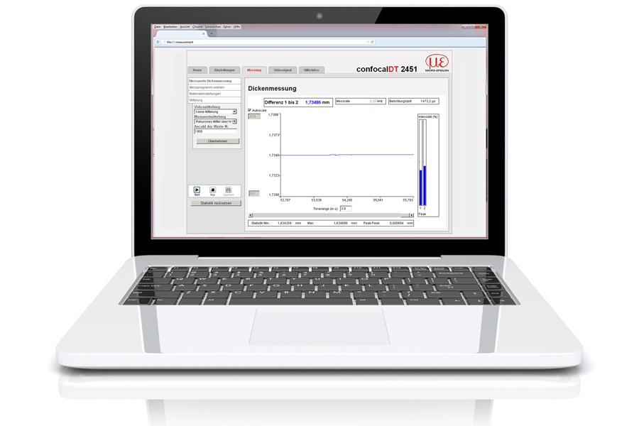 Dankzij een gebruiksvriendelijke webinterface is geen extra software nodig om de controller en de sensoren te configureren. De webinterface is toegankelijk via Ethernet en biedt instel- en configuratiemogelijkheden. Voor diktemetingen worden materialen opgeslagen in een uitbreidbare materialendatabase.