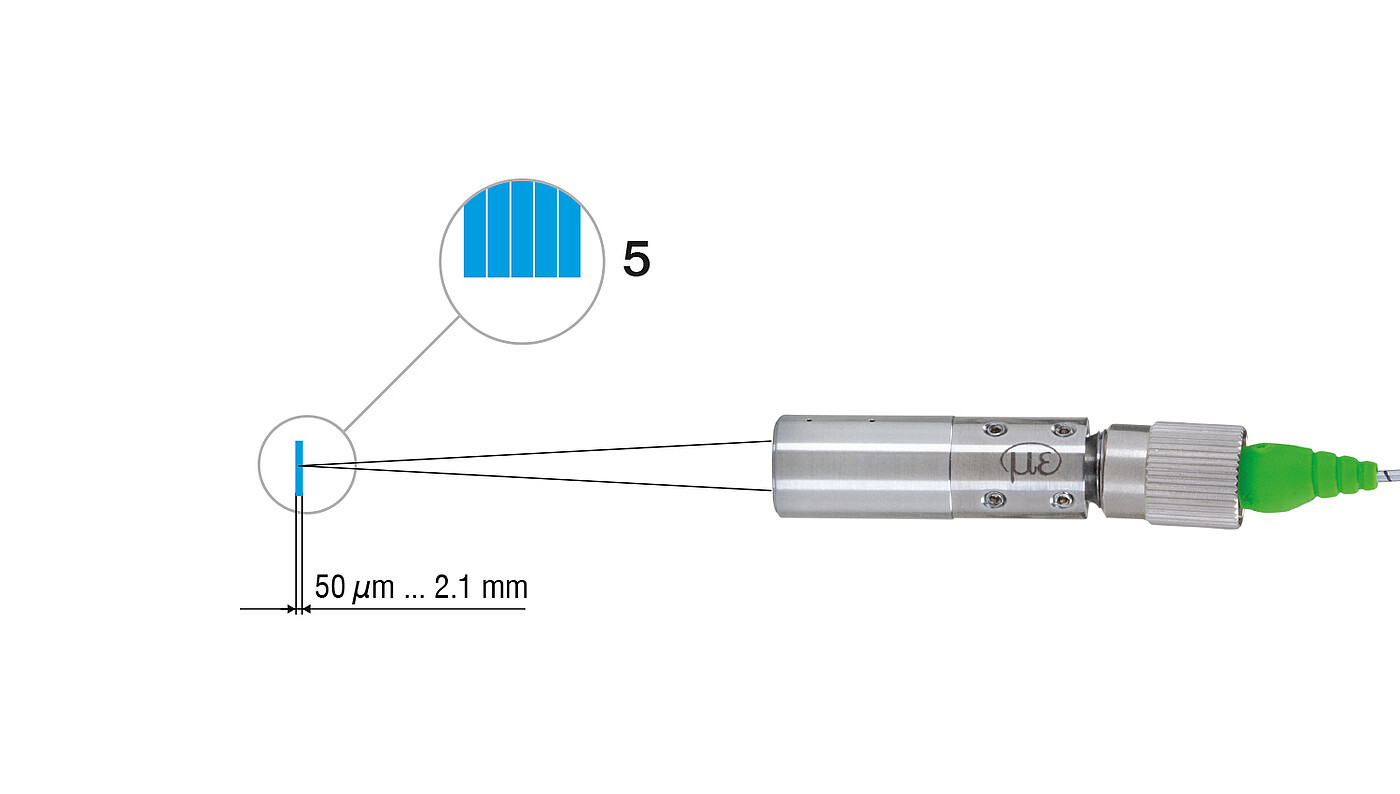 | IMS5400-TH70 | 0,035 ... 1,5 mm (voor BK7, n=1,5) / ca. 68 mm met een werkingsbereik van ca. 4,2 mm |