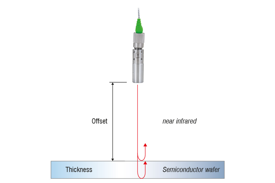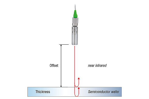 Dankzij de optische transparantie van silicium-wafers in het golflengtebereik van 1100 nm kunnen de IMS5420-interferometers de dikte nauwkeurig detecteren. In dit golflengtebereik bieden zowel ongedoteerd als gedoteerd silicium voldoende transparantie. Daarom kunnen wafer-diktes tot 1,05 mm worden gemeten. De meetbare dikte van de luchtspleet is zelfs tot 4 mm.