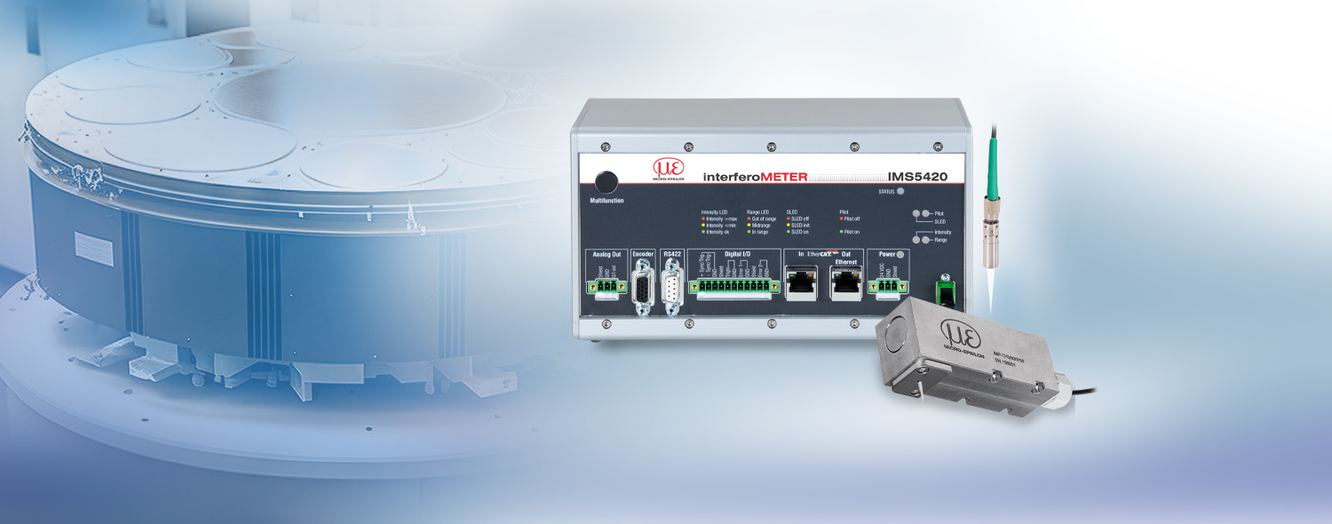 De IMS5420 is een hoogwaardige witlicht-interferometer voor contactloze diktemeting van monokristallijne siliciumwafers. De controller is voorzien van een breedband superluminescentiediode (SLED) met een golflengtebereik van 1100 nm. Dit maakt diktemeting van ongedoteerde, gedoteerde en hooggedoteerde Si-wafers met slechts één meetsysteem en een signaalstabiliteit van minder dan 1 nm mogelijk. Afhankelijk van het toepassingsgebied zijn er sensoren met een grote offsetafstand en met een luchtspoelsysteem beschikbaar.