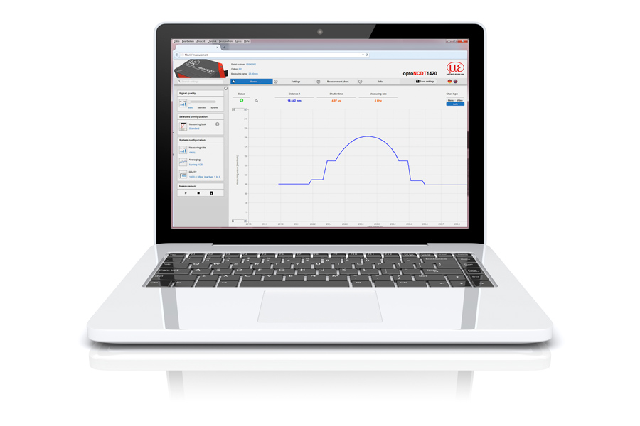 De optoNCDT sensoren worden via een intuïtieve webinterface bediend. Hiertoe wordt de sensor aangesloten op een pc en wordt de webinterface in een browser opgeroepen. Deze handige webinterface stelt de gebruiker in staat om talloze instellingen te maken voor de verwerking van meetwaarden en signalen, zoals piekselectie, filter- en maskeringsfuncties voor het videosignaal.