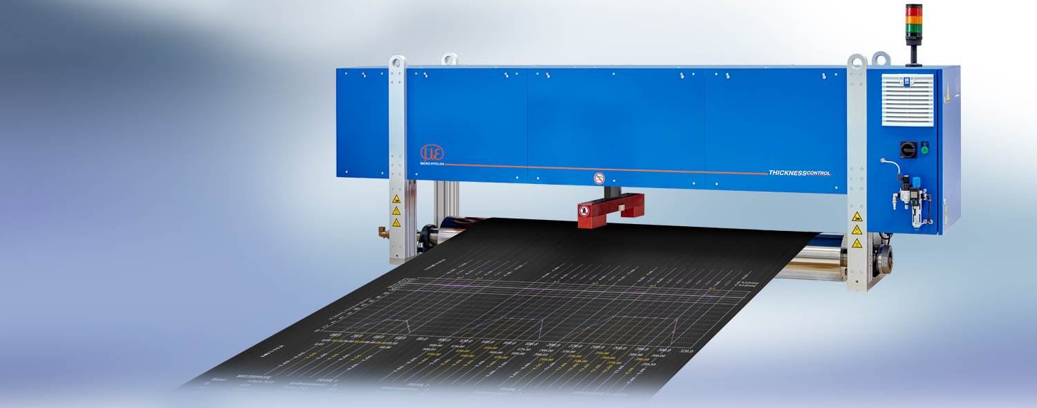 For the production of reeled resistors or sheet goods in calenders the thickness measurement is a vital factor for controlling and monitoring the production process. By applying systems of the RTP series, the profile thickness can be measured in various accuracy classes, thickness ranges and material widths.