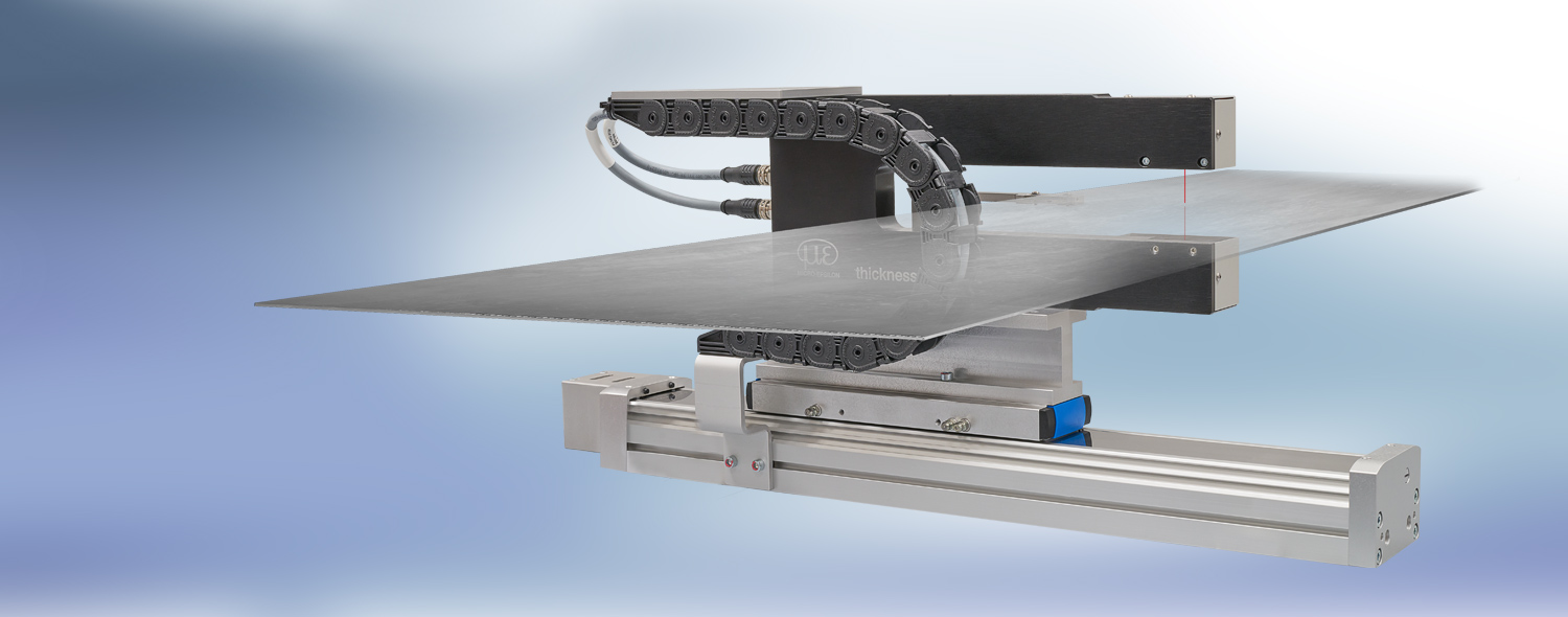 thicknessGAUGE C.LL sensor systems use laser triangulation sensors for the thickness measurement. These laser sensors enable high measuring rates at high speeds. The thicknessGAUGE.laser series impresses with a favorable price/performance ratio and is preferably used for thickness measurements of common surfaces such as plastics, wood and metals.