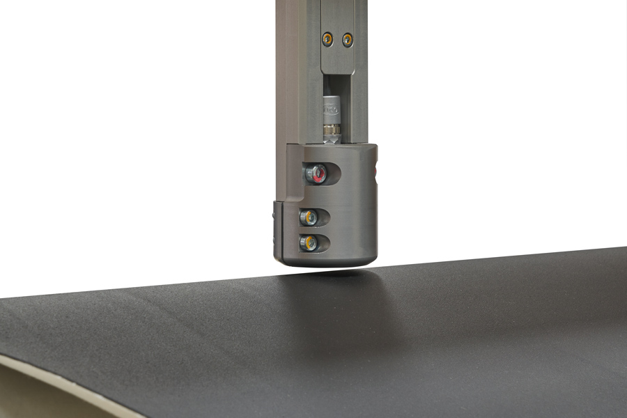 The thicknessGAUGE O.EC is a compact inline measuring system in a stable O-frame design with an aluminum roller and an integrated control cabinet. The system is used for precise thickness measurements of plastic strips and coatings up to 3 mm material thickness and web widths up to max. 1250 mm. To obtain a cross profile of the material thickness, the sensor is traversed over the film. Keeping the sensor fixed at a particular position enables a thickness profile to be generated.