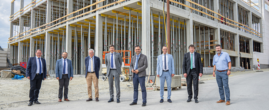 Für Micro-Epsilon Geschäftsführer Dr. Thomas Wißpeintner ist die Erweiterung eine wichtige Investition in die Zukunft. Er sieht den Neubau für Spezial-Sensorik als wichtigen Meilenstein zur nachhaltigen Sicherung und Ausweitung der Geschäftsentwicklung des Unternehmens. „Die Schlüsselbranchen in Deutschland, es handelt sich dabei um Maschinenbau und Automotive, sind schwer von der Krise getroffen. Ein breiter Branchenmix und der internationale Vertrieb geben Micro-Epsilon in der Krisenzeit Stabilität. Aber auch in diesen herausfordernden Tagen führt Investition zu Zukunftsfähigkeit. Wir investieren in die Zukunftsbranchen Aerospace, Elektronik- Halbleiter- und Batterieproduktion, um unseren Wachstumskurs beizubehalten. Damit bekennen wir uns klar zum Standort Ortenburg und zur Region. Ein attraktives Angebot in den Bereichen Wohnen, Leben und Infrastruktur hält Fachkräfte in der Region und trägt dazu bei, überregional neue Fachkräfte für die Region zu gewinnen“. „Für die Wirtschaftsregion Passau ist es von großer Bedeutung, dass ein Betrieb während der Corona-Krise investiert. Das beeindruckt mich“, so Roland Gruber während der Führung über die Baustelle und durch die Fertigungsbereiche.