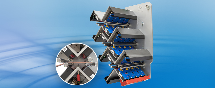 A micrometer can measure several segments or strips simultaneously, acquire the results synchronously and then output them. Several optoCONTROL 2520 sensors can be operated synchronously with each other. For ribbons and cutting machines, this allows simultaneous segment measurements of multiple strips. In addition to the bandwidth, the simultaneous acquisition of other measurement values such as the center position of the ribbons is possible. Often, smaller strips of just a few millimeters must also be measured. For this purpose, the multi-segment mode of the ODC2520 optical micrometer detects up to eight individual strips within 46 mm or 95 mm without having to change the measuring program.